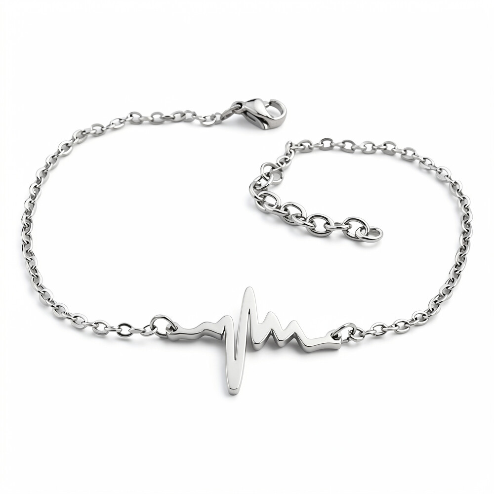 Tento elegantní náramek přináší moderní design s výrazným motivem ve tvaru srdečního tepu. Je vyroben ve stříbrné barvě, která dodává šperku nadčasový vzhled. Náramek se skvěle hodí na každodenní nošení, ale i na speciální příležitosti, kdy chcete vyniknout.