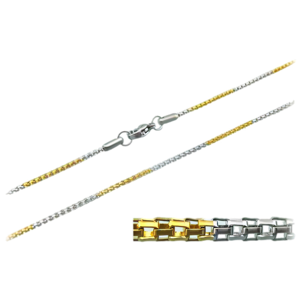 Elegantní řetízek v stříbrné a zlaté barvě, který kombinuje jemnost a moderní design. Jeho délka je 450 mm a šířka 1,4 mm, což z něj činí ideální doplněk pro každodenní nošení i speciální příležitosti.