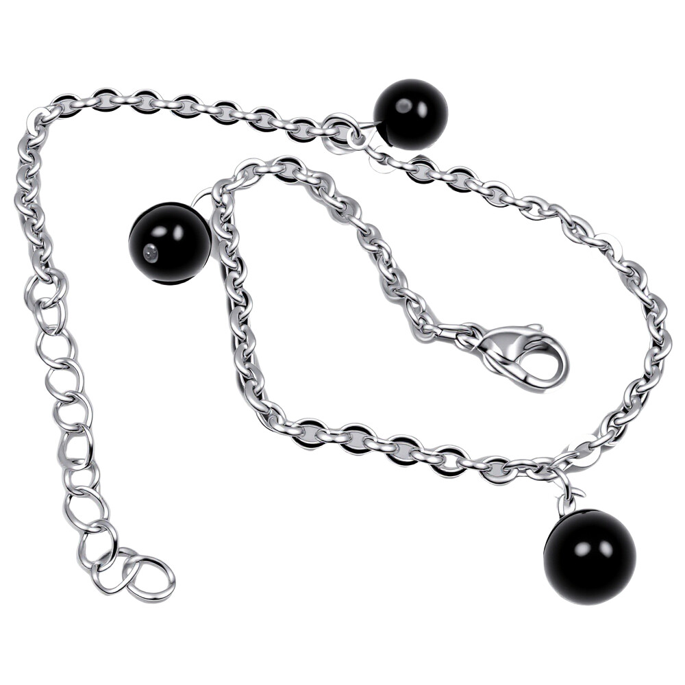 Elegantní ocelový náhrdelník o délce 23 cm v moderním designu. Šperk je zdoben třemi černými korálky, které dodávají nádech sofistikovanosti. Ideální pro každodenní nošení i speciální příležitosti. Zapínání je na karabinku, což zajišťuje bezpečné nošení. Tento unisex kousek se skvěle hodí k různým stylům a outfitům.