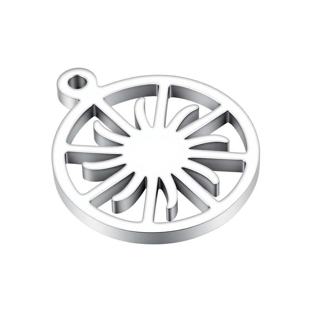stříbrnou barvu a jeho průměr činí 20 mm.Vzor přívěsku je stylizovaný sluneční motiv, který symbolizuje energii, světlo a pozitivitu. Je ideální pro každodenní nošení, ale také se hodí na speciální příležitosti, kdy chcete dodat svému outfitu šmrnc.Tento šperk je