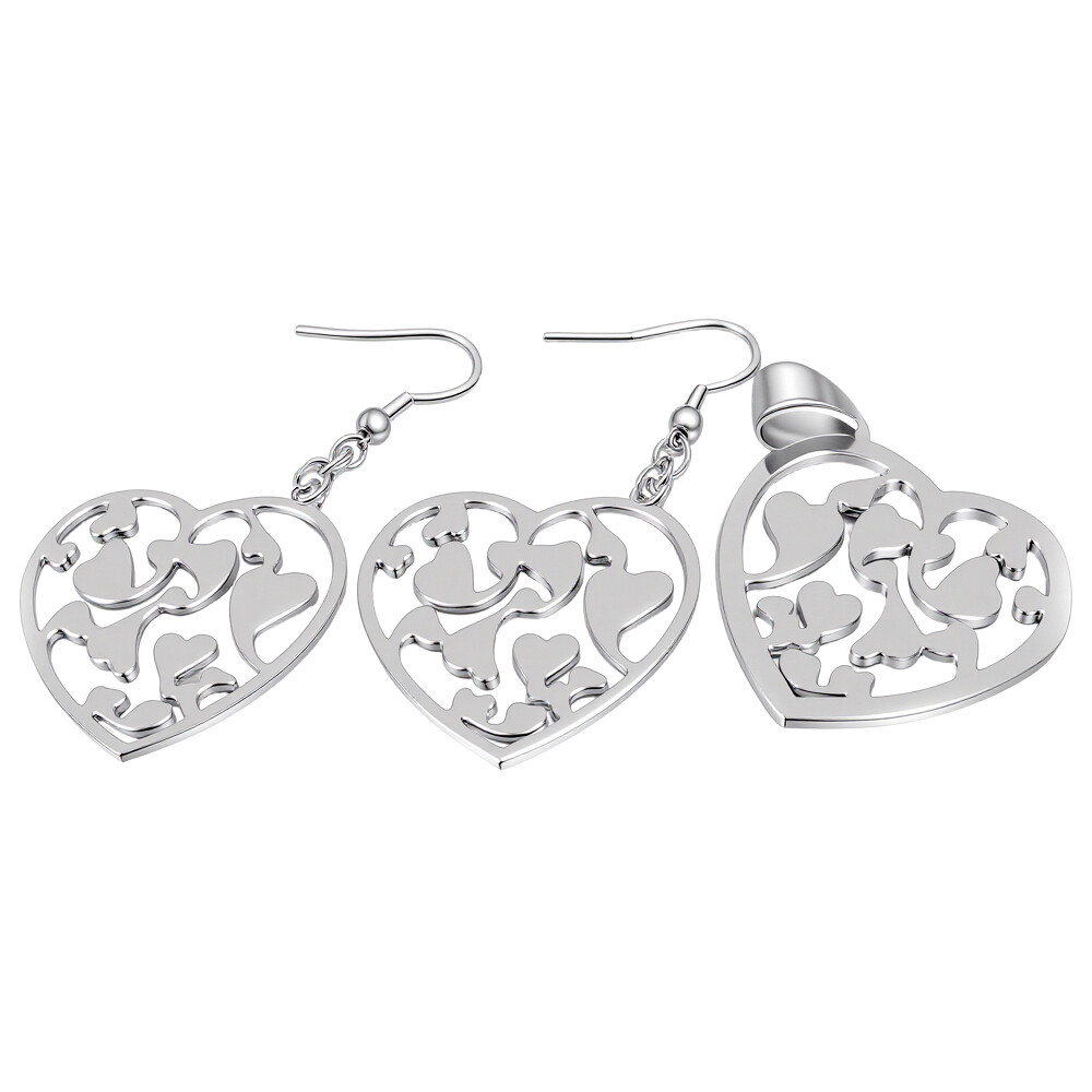 Elegantní šperkový set ve tvaru srdce, který zahrnuje pár náušnic a přívěsek. Tento set je vyroben v