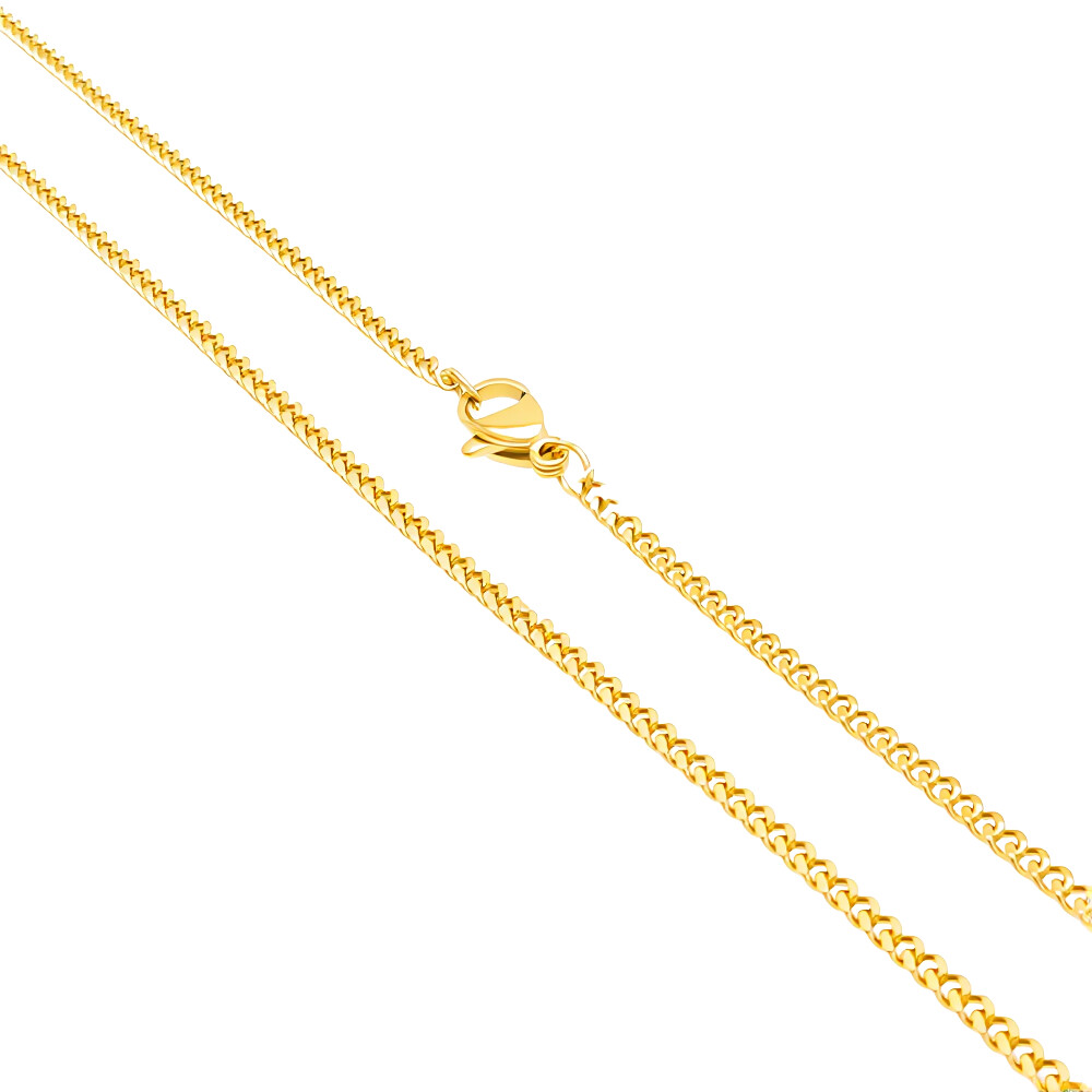 Elegantní zlatý náhrdelník je perfektní volbou pro každou příležitost. Jeho lesklý zlatý povrch dodává šperku luxusní vzhled, který osloví každého. Tento náhrdelník se hodí jak pro každodenní nošení, tak pro speciální události, jako jsou oslavy, večírky nebo svatby.- Délka: 500 mm - Šířka: 2 mm - Váha: 4 g - Zapínání: Karabinka - Vzor: Hladký a elegantníTento šperk je určen pro dámy, ale lze ho nosit i jako unisex. Je ideálním doplňkem k různým stylům oblečení a může být kombinován s dalšími šperky pro vytvoření osobitého vzhledu.